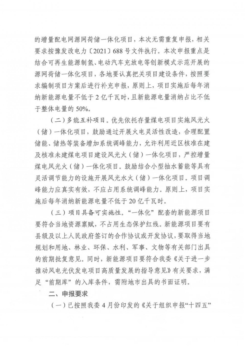 對于源網(wǎng)荷儲一體化項目,本次補充申報重點結(jié)合可再生能源制氫、電動汽車充放電等創(chuàng)新模式示范開展的源網(wǎng)荷儲一體化項目,各地要認真把關項目建設條件,按照要求編制項目方案后進行補充申報,原則上,項目實施后每年消納新能源電量不低于2億千瓦時,且新能源電量消納占比不低于整體電量的50%。