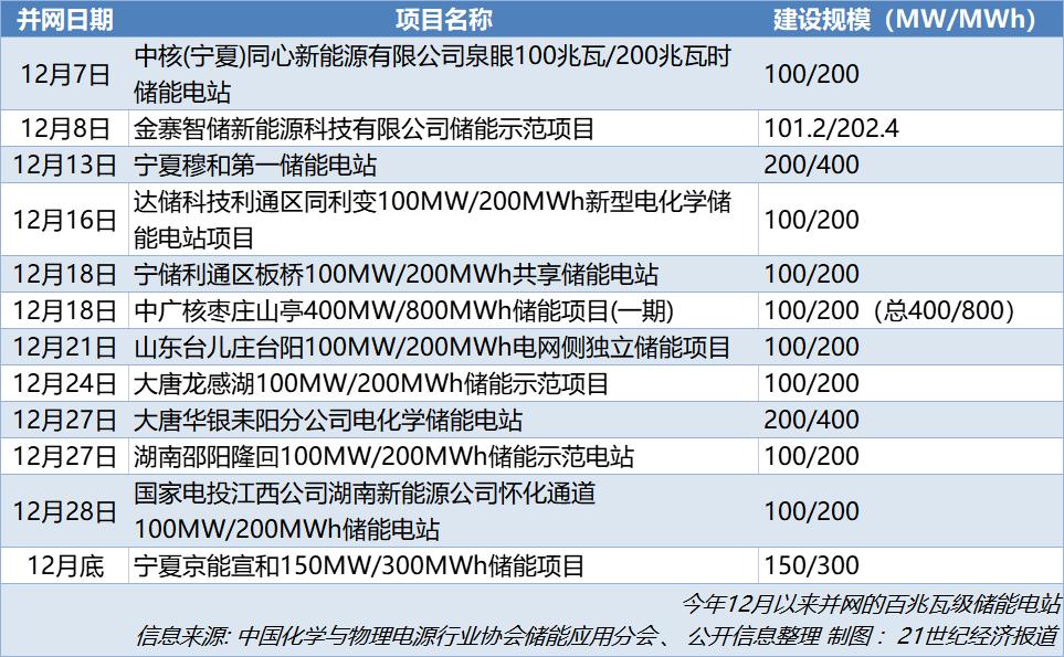 臨近年底,國內(nèi)大型儲(chǔ)能電站迎來一輪集中并網(wǎng)熱潮。
