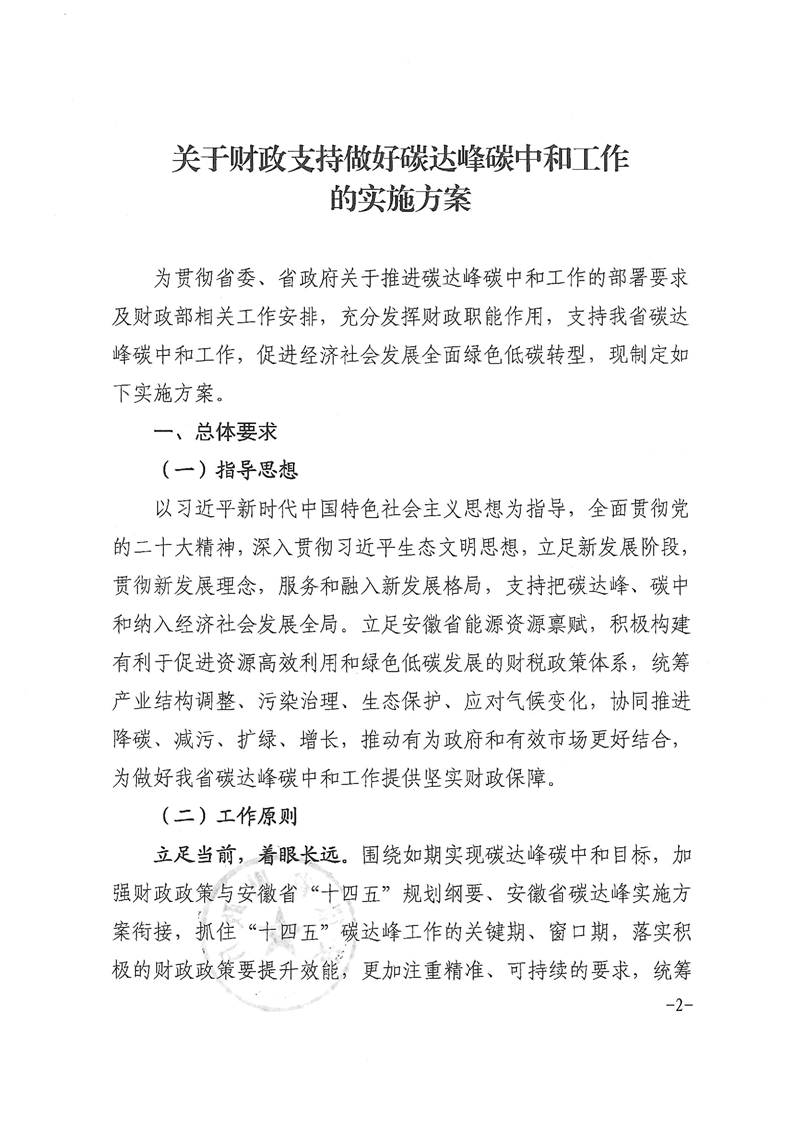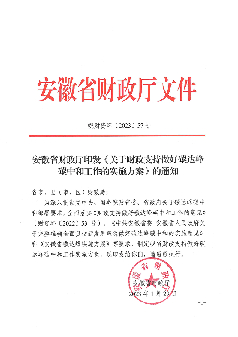 1月29日,安徽省財(cái)政廳印發(fā)《關(guān)于財(cái)政支持做好碳達(dá)峰碳中和工作的實(shí)施方案》的通知。