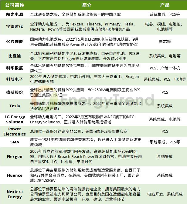 圖:美國儲能市場主要參與者介紹