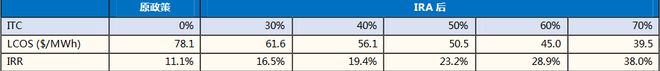 圖:經(jīng)濟性測算:IRA頒布后獨立儲能的經(jīng)濟性大幅提升(100MW/400MWh項目)