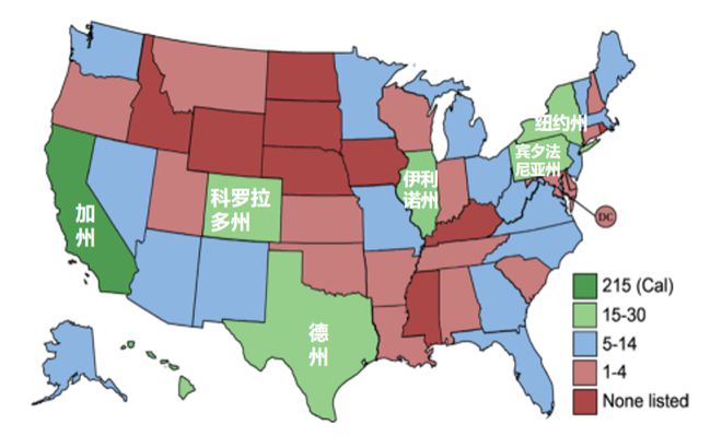 圖:各州并網(wǎng)儲能項目數(shù)量