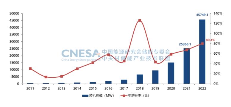 隨著全球能源轉(zhuǎn)型加速,各國政府碳中和方案相繼落地,新能源儲(chǔ)能的需求愈發(fā)強(qiáng)烈。2022年全球儲(chǔ)能市場(chǎng)裝機(jī)功率為237.2GW,其中以抽水儲(chǔ)能占據(jù)主要地位,而后來獲得快速發(fā)展的電化學(xué)儲(chǔ)能占比約為20.59%,電化學(xué)儲(chǔ)能裝機(jī)規(guī)模約為43.14GW。從行業(yè)發(fā)展來看,電化學(xué)儲(chǔ)能已經(jīng)成為滿足多種應(yīng)用場(chǎng)景和需求的主要儲(chǔ)能方式之一。