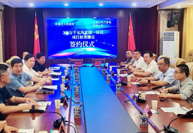 8月10日,內(nèi)蒙古烏蘭察布豐鎮(zhèn)市人民政府與廣東粵電湛江風力發(fā)電有限公司舉行能源產(chǎn)業(yè)合作項目簽約儀式, 共同推進300萬千瓦 “風光儲一體化”項目落地, 政企攜手推動綠色低碳轉(zhuǎn)型邁上新臺階。