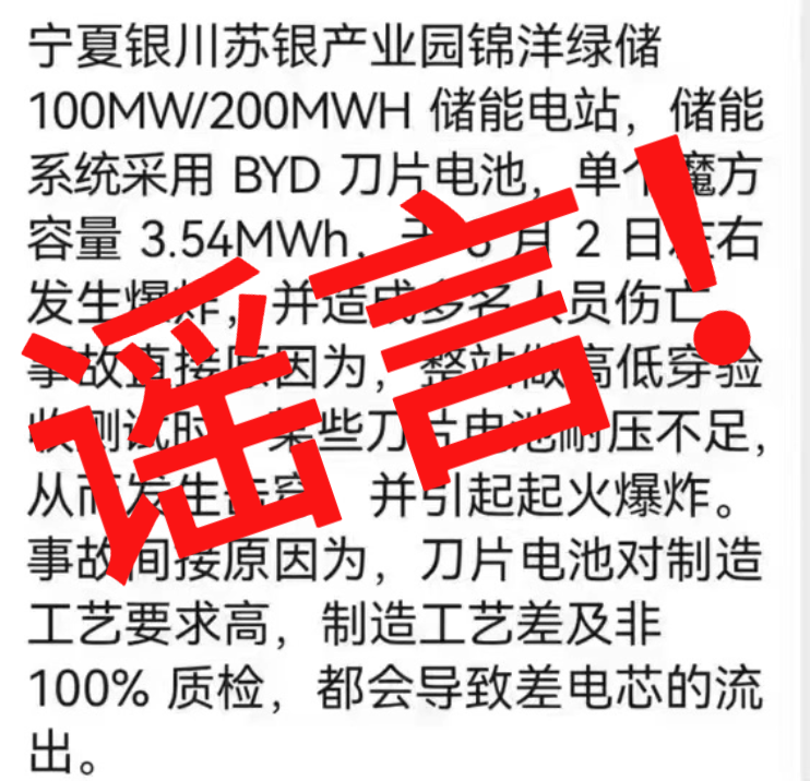 近日,有關(guān)“比亞迪儲能供貨的寧夏銀川錦洋綠儲儲能電站于2023年8月2日起火爆炸,造成多人傷亡”的圖片、視頻等在網(wǎng)絡(luò)傳播。
