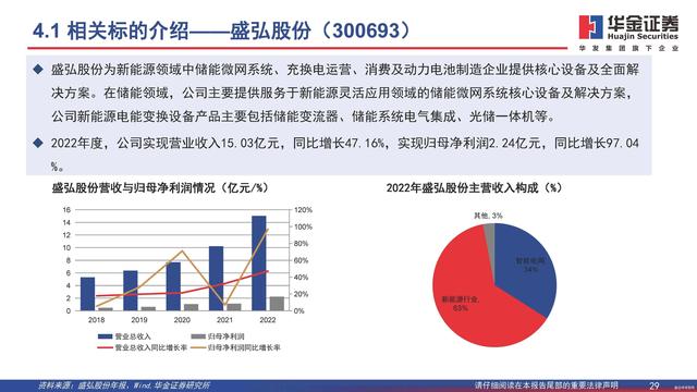 盛弘股份為新能源領域中儲能微網(wǎng)系統(tǒng)、充換電運營、消費及動力電池制造企業(yè)提供核心設備及全面解決方案。在儲能領域,公司主要提供服務于新能源靈活應用領域的儲能微網(wǎng)系統(tǒng)核心設備及解決方案,公司新能源電能變換設備產(chǎn)品主要包括儲能變流器、儲能系統(tǒng)電氣集成、光儲一體機等。 2022年度,公司實現(xiàn)營業(yè)收入15.03億元,同比增長47.16%,實現(xiàn)歸母凈利潤2.24億元,同比增長97.04%。