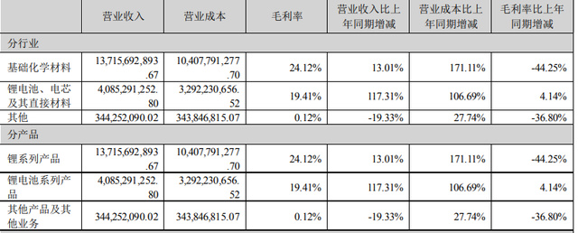 今年上半年,贛鋒鋰業(yè)的鋰電池系列產(chǎn)品營業(yè)收入達(dá)到40.85億元,同比增長(zhǎng)117.31%,占比首度突破20%達(dá)到22.5%,毛利率更是增長(zhǎng)了4.14個(gè)百分點(diǎn)到19.41%,成為贛鋒鋰業(yè)唯一實(shí)現(xiàn)毛利率正增長(zhǎng)的業(yè)務(wù)。