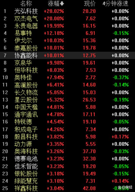 從個股來看,光弘科技(300735.SZ)、雙杰電氣(300444.SZ)、永貴電器(300351.SZ)、易事特(300376.SZ)、伊戈爾(002922.SZ)、泰嘉股份(002843.SZ)、協(xié)鑫能科(002015.SZ)等近十個股票相繼漲停。