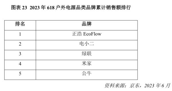 京東商智、天貓生意參謀等電商大數(shù)據(jù)平臺(tái)數(shù)據(jù)顯示,2022年6月-2023年5月,正浩 EcoFlow、電小二在國(guó)內(nèi)京東、天貓等主流電商平臺(tái)戶外電源品類中的銷量排名始終位于前三位。整體來看,中國(guó)便攜式儲(chǔ)能市場(chǎng)中,正浩創(chuàng)新銷售額暫居第一。