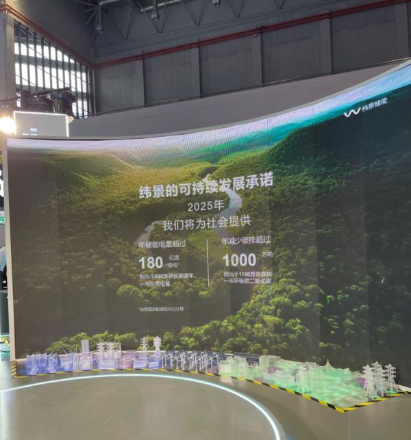 11月6日,澎湃新聞?dòng)浾邚木暰皟?chǔ)能位于進(jìn)博會(huì)的展臺(tái)現(xiàn)場(chǎng)了解到,緯景儲(chǔ)能承諾 從2025年起為社會(huì)提供超過(guò)180億度的年儲(chǔ)能電量,相當(dāng)于690萬(wàn)輛新能源車一年所需電量,年減少碳排放超過(guò)1000萬(wàn)噸,相當(dāng)于1000萬(wàn)畝森林一年所吸收的二氧化碳。