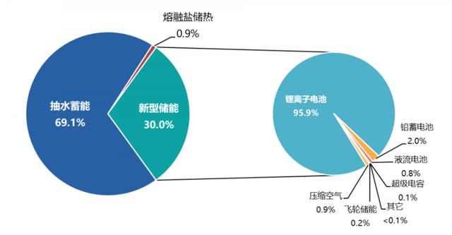新型儲(chǔ)能是指除抽水蓄能以外的新型儲(chǔ)能技術(shù),包括鋰離子電池、液流電池、壓縮空氣、飛輪儲(chǔ)能、儲(chǔ)熱蓄冷、氫儲(chǔ)能等。相較于傳統(tǒng)抽水蓄能,新型儲(chǔ)能具有響應(yīng)速度快、建設(shè)周期短、調(diào)節(jié)性能高、選址布局靈活等優(yōu)勢(shì)。既可以發(fā)揮傳統(tǒng)儲(chǔ)能的“蓄水池”作用,在新能源發(fā)電量多的時(shí)候?qū)⒍嘤嚯娏績(jī)?chǔ)存;又可以發(fā)揮“充電寶”的效用,在發(fā)電量少的時(shí)候,向電網(wǎng)送電,促使整體電力系統(tǒng)安全穩(wěn)定運(yùn)行。