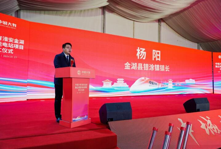 儀式開始,金湖縣銀涂鎮(zhèn)黨委副書記、鎮(zhèn)長楊陽首先致辭對項目表示祝賀,并指出該項目是銀涂鎮(zhèn)貫徹落實縣委縣政府縣域經(jīng)濟(jì)突破決策部署,是深入開展重特大項目攻堅的重要階段性成果。他強(qiáng)調(diào),中城大有項目的開工,吹響了2024年“雙招雙引”的號角,擂響了項目建設(shè)的戰(zhàn)鼓。項目開工只是開始,加快推進(jìn)、建成投產(chǎn)才是關(guān)鍵。銀涂將以開工為新的起點,繼續(xù)把項目建設(shè)作為各項工作的頭版頭條,全力以赴抓招商、強(qiáng)平臺、優(yōu)服務(wù),一如既往為項目建設(shè)提供最優(yōu)質(zhì)的服務(wù),做好企業(yè)全生命周期服務(wù)、全要素保障,以企業(yè)需求為導(dǎo)向,明確項目分管領(lǐng)導(dǎo)和專職幫辦員,進(jìn)行專人對接,實行“全程跟進(jìn)+現(xiàn)場服務(wù)”幫辦模式,千方百計為項目投產(chǎn)搶時間、趕進(jìn)度,全力保障中城大有早日投產(chǎn)達(dá)效。