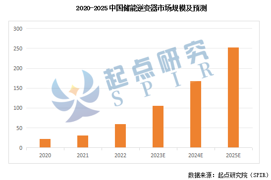 近年來,我國儲(chǔ)能市場呈現(xiàn)出高速增長態(tài)勢(國家能源局?jǐn)?shù)據(jù),2023年上半年國內(nèi)新型儲(chǔ)能新增裝機(jī)8.63GW/17.72GWh,接近歷年累計(jì)裝機(jī)總和),催生對于儲(chǔ)能逆變器的巨大需求,儲(chǔ)能逆變器市場前景廣闊。據(jù)起點(diǎn)研究院(SPIR)數(shù)據(jù)和預(yù)測,2022年中國儲(chǔ)能逆變器市場規(guī)模達(dá)60億元,2023年將達(dá)105億元,同比增速達(dá)75%,預(yù)測到2025年達(dá)252億。