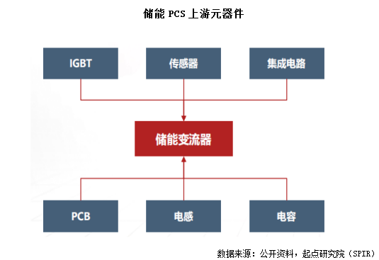 儲(chǔ)能PCS的上游主要是電子元器件,其中IGBT(絕緣柵雙極型晶體管)是核心部件,IGBT的性能決定了儲(chǔ)能PCS的性能。在儲(chǔ)能PCS中,材料成本占比約93%,其中占比最高的是結(jié)構(gòu)件(26.7%),其次是電感(13.8%)和半導(dǎo)體元器件(11.4%)。