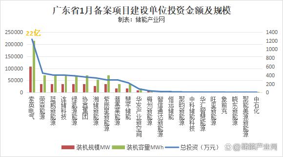從1月廣東儲能備案項(xiàng)目建設(shè)單位來看,總投資額超83億。其中,索英電氣2個(gè)項(xiàng)目總投資金額高達(dá)22億元,總規(guī)模為600MW/1200MWh;廣訊力神總投資金額最少,為27.84萬元,規(guī)模為0.1MW/0.232MWh;當(dāng)然,在這些建設(shè)單位中像協(xié)鑫、恒運(yùn)儲能、皇鼎儲能都是經(jīng)常出現(xiàn)的企業(yè)。