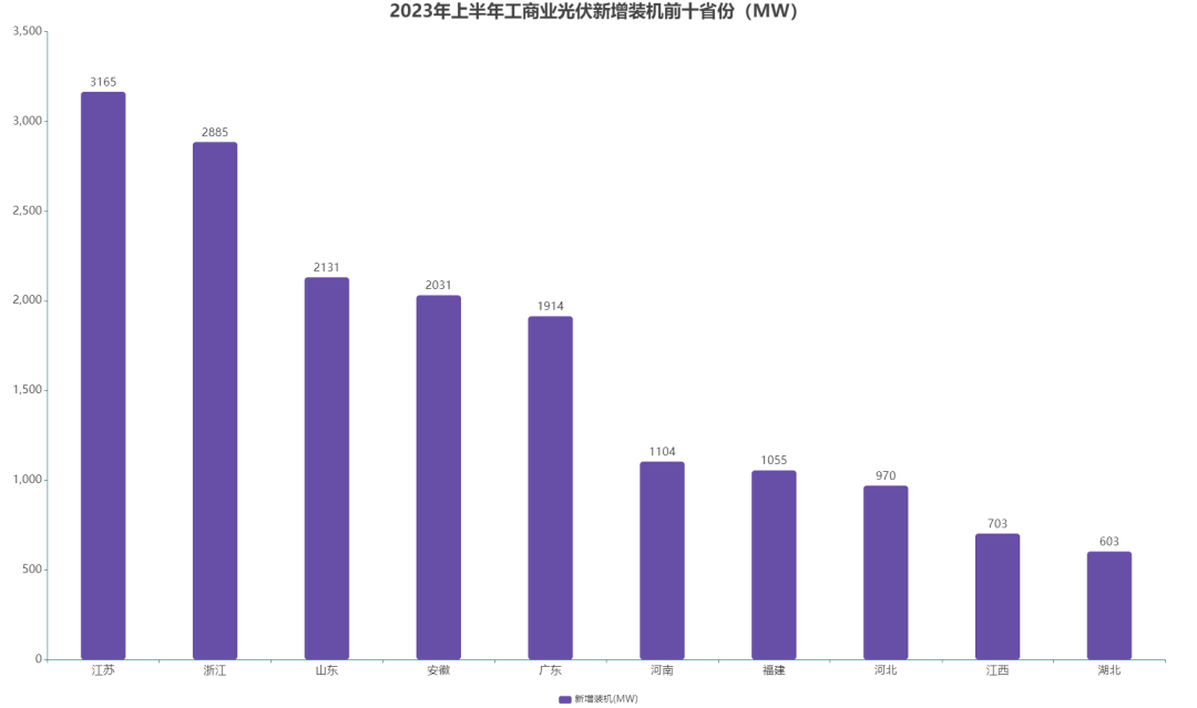 ※ 2023年上半年工商業(yè)光伏新增撞擊前十省份(MW)
