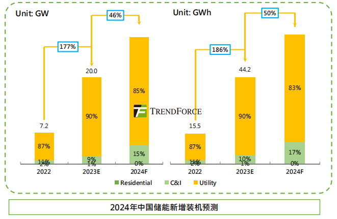 中國裝機(jī)預(yù)測:據(jù)集邦咨詢預(yù)測,2024年中國儲能新增裝機(jī)將達(dá)29.2GW/66.3GWh,其中工商業(yè)儲能有望達(dá)到4.3GW/11.2GWh。