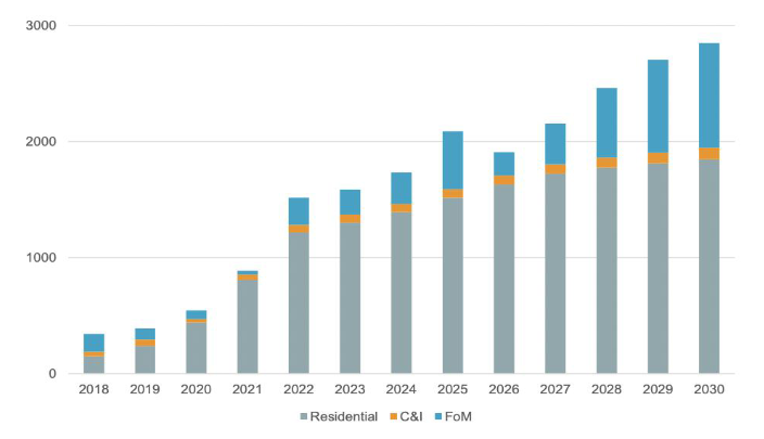 圖:2023-2030德國新增儲能裝機(jī)預(yù)測(MW)
