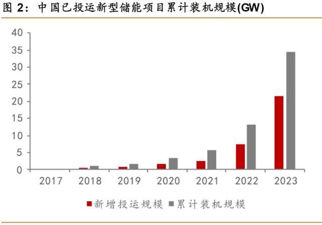 2023年中國新增投運新型儲能項目裝機規(guī)模21.5GW/46.6GWh,是2022年新增投運規(guī)模的3倍,預計2024年國內(nèi)全年新增裝機將超過35GW,保持高速增長。