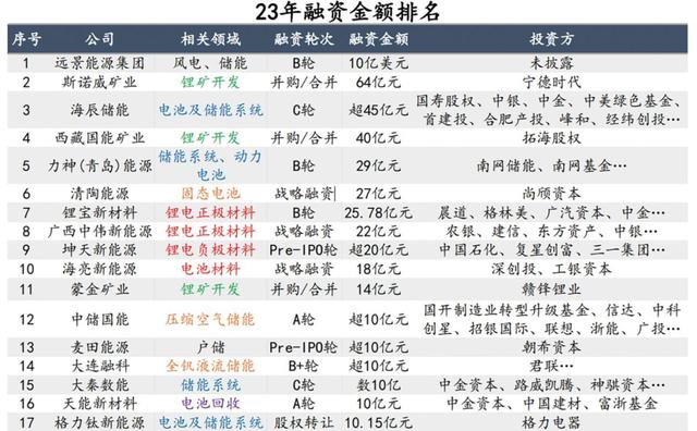 2023年,部分企業(yè)獲取高額融資,遠(yuǎn)景能源、海辰儲(chǔ)能融資領(lǐng)銜。