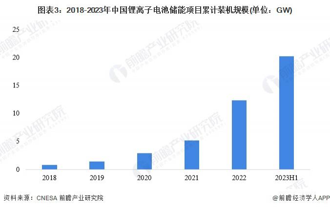 鋰離子電池具有環(huán)境污染小、能量密度高、循環(huán)壽命長(zhǎng)、倍率性能強(qiáng)等優(yōu)點(diǎn),隨著其成本下降,鋰離子電池的經(jīng)濟(jì)性開(kāi)始日益凸顯,在儲(chǔ)能市場(chǎng)的應(yīng)用也愈發(fā)廣泛。近年來(lái),我國(guó)鋰離子電池儲(chǔ)能裝機(jī)規(guī)模持續(xù)上漲。2022 年,我國(guó)鋰離子電池儲(chǔ)能累計(jì)裝機(jī)規(guī)模達(dá)到 12.3GW,較 2021 年實(shí)現(xiàn)大幅增長(zhǎng)。截至 2023 年上半年末,我國(guó)鋰離子電池儲(chǔ)能累計(jì)裝機(jī)規(guī)模已達(dá) 20.2GW。