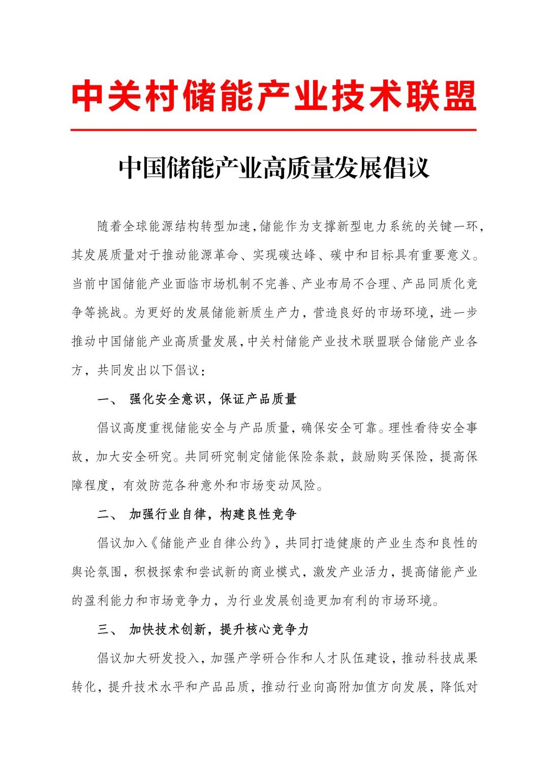 中國(guó)儲(chǔ)能產(chǎn)業(yè)高質(zhì)量發(fā)展倡議