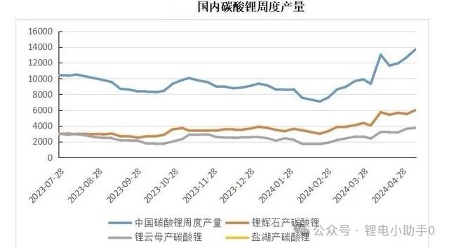 隨著目前鋰價回落,外采鋰云母企業(yè)面臨較大生產(chǎn)壓力,但鹽湖和鋰輝石產(chǎn)碳酸鋰供給仍為增長趨勢,總體供給趨向?qū)捤?。碳酸鋰價格短期或維持低位,市場謹(jǐn)慎鋰鹽廠挺價情緒強烈。隨著電池端產(chǎn)量增長,碳酸鋰產(chǎn)量和進口量也在持續(xù)上升,五月份市場過剩情況有所加劇,市場對價格下跌趨勢保持謹(jǐn)慎,預(yù)計碳酸鋰價格震蕩偏弱運行。