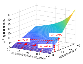 圖3 系統(tǒng)慣量需求和最大頻率變化率及擾動功率的關(guān)系