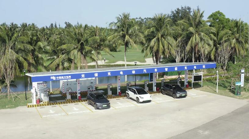 2023年3月,南網(wǎng)儲(chǔ)能建成投產(chǎn)海南省瓊海市博鰲鎮(zhèn)東嶼島首座光儲(chǔ)充電動(dòng)汽車智能充電站,項(xiàng)目采用“數(shù)字化+智能化”方式運(yùn)營,光儲(chǔ)充電站白天利用光伏發(fā)電,支撐充電樁充電,同時(shí)儲(chǔ)能吸收光伏裕余電力或谷電,在站內(nèi)用電高峰時(shí)向充電樁送電協(xié)助支撐負(fù)荷,實(shí)現(xiàn)削峰填谷、增加新能源消納、極速充電等多種功能,打造“零碳”微網(wǎng)示范應(yīng)用。