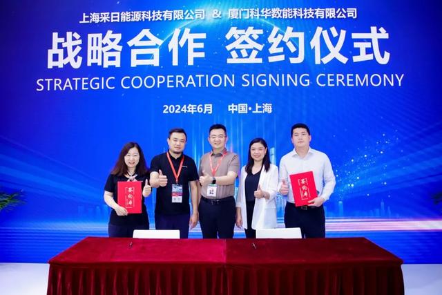 6月14日,采日能源技術(shù)中心副總經(jīng)理孫麗娜、廈門(mén)科華數(shù)能科技有限公司上海區(qū)域業(yè)務(wù)負(fù)責(zé)人許瑜平作為雙方代表,正式簽署了戰(zhàn)略合作協(xié)議。廈門(mén)科華數(shù)能科技有限公司總裁崔劍、副總裁李元元、采日能源總經(jīng)理王健鵬等雙方領(lǐng)導(dǎo)出席并見(jiàn)證簽約。