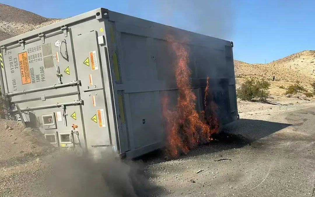 事故起因是一輛載有集裝箱儲(chǔ)能設(shè)備的卡車(chē)翻覆后,電池集裝箱起火,所幸目前公路已恢復(fù)通行。