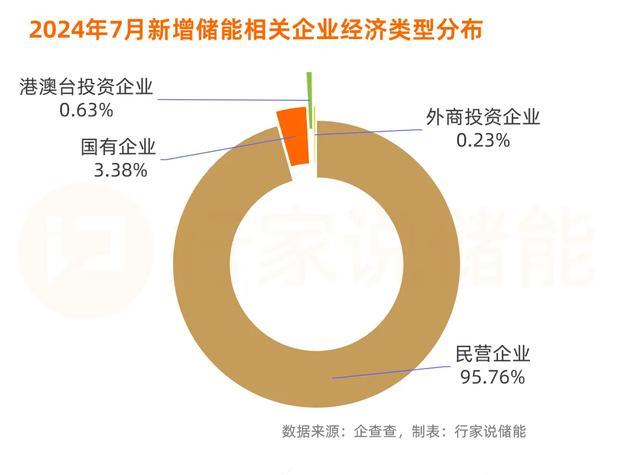 7月新設(shè)儲能相關(guān)企業(yè)中,9成多是民營企業(yè),達7210家;國有企業(yè)262家,港澳臺獨資企業(yè)49家,外商投資企業(yè)18家。