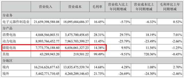 動力電池出貨13.54GWh,同比增長7.03%;營收89.94億,同比下降25.79%;毛利率11.45%。
