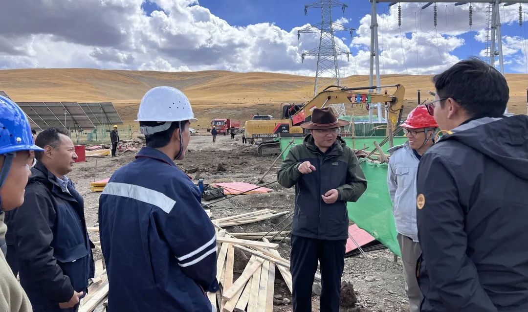 在伯托100MW光伏儲能項(xiàng)目現(xiàn)場,李成統(tǒng)與國家電投山南電力公司負(fù)責(zé)人視頻連線,就加快施工進(jìn)度、謀劃延伸產(chǎn)業(yè)鏈、形成發(fā)展線等方面進(jìn)行交流。與現(xiàn)場負(fù)責(zé)人深入交談,實(shí)地查看項(xiàng)目進(jìn)展,詳細(xì)了解項(xiàng)目建設(shè)進(jìn)度、質(zhì)量管控、安全生產(chǎn)、生態(tài)環(huán)境等情況,現(xiàn)場協(xié)調(diào)解決項(xiàng)目建設(shè)過程中存在的困難和問題。