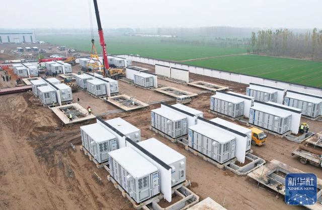 11月15日,工人在位于河北省衡水市故城縣軍屯鎮(zhèn)境內(nèi)的百兆瓦級獨立儲能電站建設(shè)工地施工。新華社記者楊世堯 攝