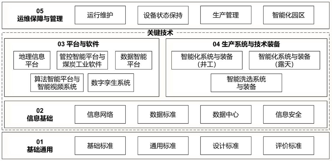 2.管控智能平臺與煤炭工業(yè)軟件標準,主要包括煤礦智能化綜合管控平臺與煤炭工業(yè)軟件的技術(shù)架構(gòu)、功能要求、評估指標、應用管理等方面標準。