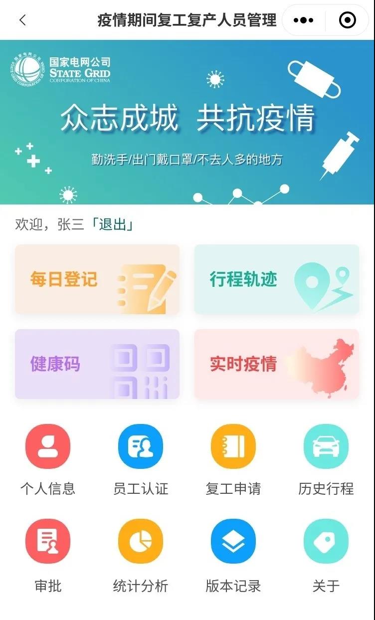 復(fù)工管理應(yīng)用通過(guò)信息化手段實(shí)現(xiàn)疫情期間對(duì)人員的高效管控,有效支撐了國(guó)家電網(wǎng)公司的復(fù)工復(fù)產(chǎn)工作,保障了社會(huì)生產(chǎn)生活的用電需求。