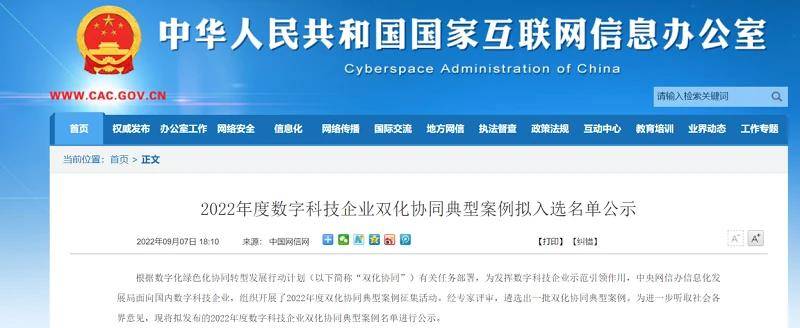 9月7日,中央網(wǎng)信辦信息化發(fā)展局公示2022年度數(shù)字科技企業(yè)雙化協(xié)同典型案例擬入選名單,廣域銘島入圍名單。