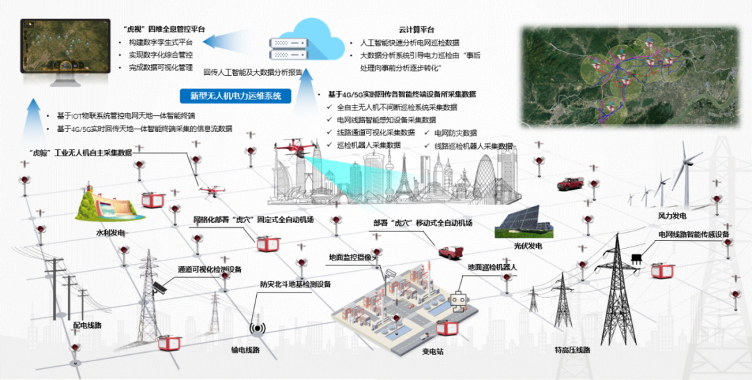 無人機(jī)及全自動機(jī)場系統(tǒng)可以實(shí)現(xiàn)網(wǎng)格化、集群化部署,通過基于PMS3.0設(shè)備管理體系的四維全息管控平臺和全自主無人機(jī)、全自動機(jī)場組成的智能化不間斷電力巡檢系統(tǒng),統(tǒng)一集中管控調(diào)度,全面實(shí)現(xiàn)全自動機(jī)場之間的蛙跳、對飛、同步作業(yè)等集群作業(yè)模式,高效完成作業(yè)任務(wù)。全面助力電網(wǎng)“數(shù)字新基建”建設(shè),為電網(wǎng)輸、變、配場景保電工作提供7×24小時(shí)不間斷有力巡檢支撐,為電力的安全與穩(wěn)定保駕護(hù)航,最終實(shí)現(xiàn)電力巡檢工人足不出戶,即可全自主不間斷地完成電力智能巡檢,一鍵獲取電力巡檢報(bào)告。