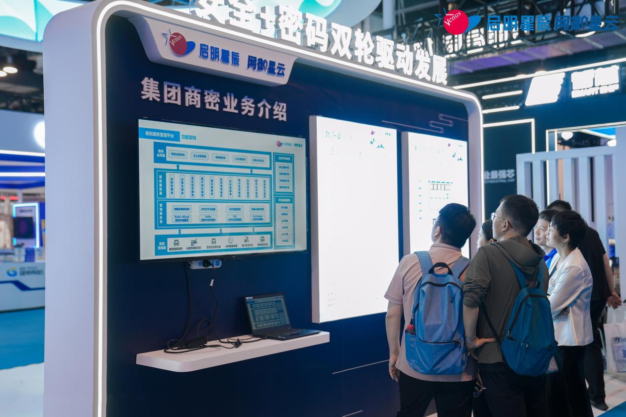 本次展會上,啟明星辰集團(tuán)集中展示了其在商用密碼應(yīng)用安全領(lǐng)域的產(chǎn)品矩陣與創(chuàng)新實(shí)踐,包括密碼服務(wù)管理平臺、密鑰管理系統(tǒng)、云服務(wù)器密碼機(jī)、服務(wù)器密碼機(jī)、簽名驗(yàn)簽服務(wù)器、電子簽章系統(tǒng)、數(shù)據(jù)透明加解密系統(tǒng)等市場主流商用密碼產(chǎn)品,及零信任SDP安全網(wǎng)關(guān)、高性能VPN安全網(wǎng)關(guān)、量子VPN安全網(wǎng)關(guān)等諸多新型密碼安全工程實(shí)踐,吸引眾多與會領(lǐng)導(dǎo)、行業(yè)專家、觀展嘉賓等駐足交流。