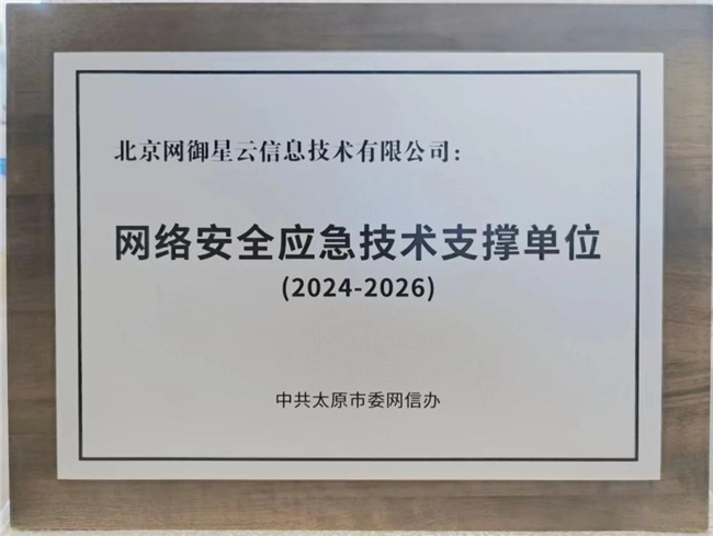 多年來,網(wǎng)御星云積極投身山西省網(wǎng)絡(luò)安全建設(shè),為地區(qū)網(wǎng)絡(luò)安全產(chǎn)業(yè)發(fā)展不斷貢獻(xiàn)智慧與力量。在啟動(dòng)儀式上,網(wǎng)御星云憑借優(yōu)秀的網(wǎng)絡(luò)安全技術(shù)能力和服務(wù),榮獲太原市委網(wǎng)信辦頒發(fā)的“網(wǎng)絡(luò)安全應(yīng)急技術(shù)支撐單位”稱號(hào)!