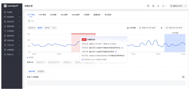 DataBuff 新核心業(yè)務(wù)觀測與故障定位解決方案主要包括三個方面的功能:基于業(yè)務(wù)觀測的用戶旅程分析、基于因果AI的故障定位能力、基于生成式AI的運維自動化能力,以下展開詳細(xì)說明: