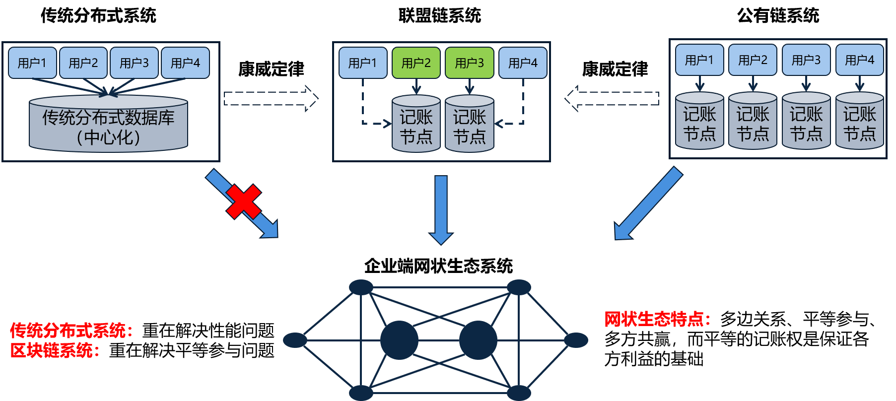 社會(huì)環(huán)境已經(jīng)從具有較強(qiáng)依附關(guān)系的中心化輻射狀生態(tài)結(jié)構(gòu)逐漸演進(jìn)至平臺(tái)化、多中心、自由協(xié)作的網(wǎng)狀體系,尤其是在企業(yè)端,根據(jù)康威定律,設(shè)計(jì)對象的組織結(jié)構(gòu)會(huì)映射到其系統(tǒng)結(jié)構(gòu),所以,符合多中心網(wǎng)狀生態(tài)特點(diǎn)的系統(tǒng)架構(gòu)必然會(huì)應(yīng)運(yùn)而生。傳統(tǒng)的分布式系統(tǒng)其誕生目的主要是為了提升系統(tǒng)性能,而區(qū)塊鏈系統(tǒng)則更多考慮了如何幫助用戶平等參與網(wǎng)絡(luò),這應(yīng)該是二者在設(shè)計(jì)理念上的核心差別,因此,區(qū)塊鏈系統(tǒng)比傳統(tǒng)的分布式系統(tǒng)更適于多方共贏生態(tài)環(huán)境的構(gòu)建。這個(gè)是看起來有點(diǎn)兒“務(wù)虛”,但是也有其道理的聯(lián)盟鏈的價(jià)值。公鏈的問題在于,如果現(xiàn)階段應(yīng)用,顯然不符合企業(yè)端生態(tài)的實(shí)際情況,企業(yè)端的生態(tài)環(huán)境即便你一開始沒設(shè)計(jì)中心也會(huì)自然產(chǎn)生中心,這是人的社會(huì)性決定的,所以也不要那么排斥所謂的“中心化”,鏡子中照出來的無論好不好看都是你自己,化妝不解決本質(zhì)問題。