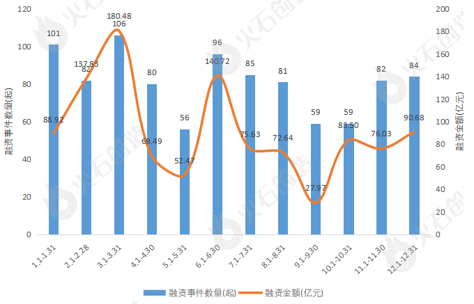 圖1:2022年1-12月融資情況 來源:火石創(chuàng)造產(chǎn)業(yè)數(shù)據(jù)中心