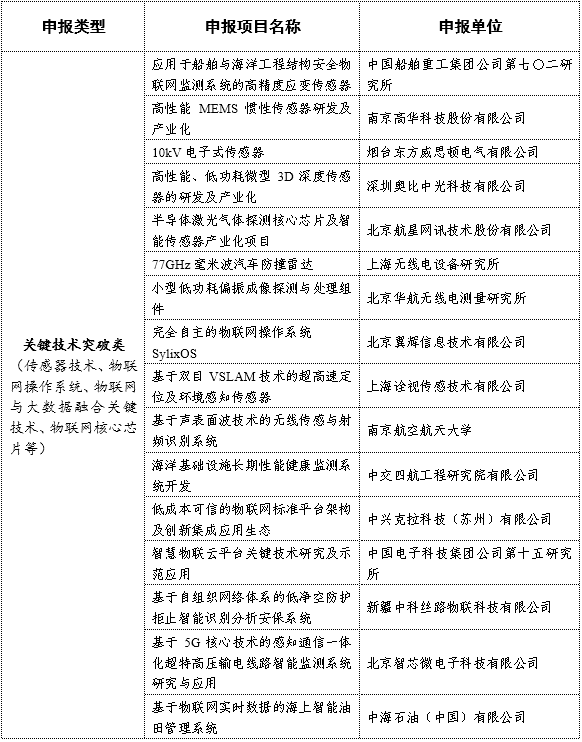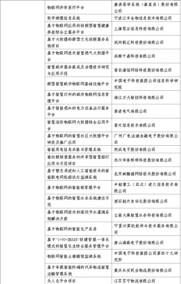 2018年物聯(lián)網(wǎng)集成創(chuàng)新與融合應用項目名單