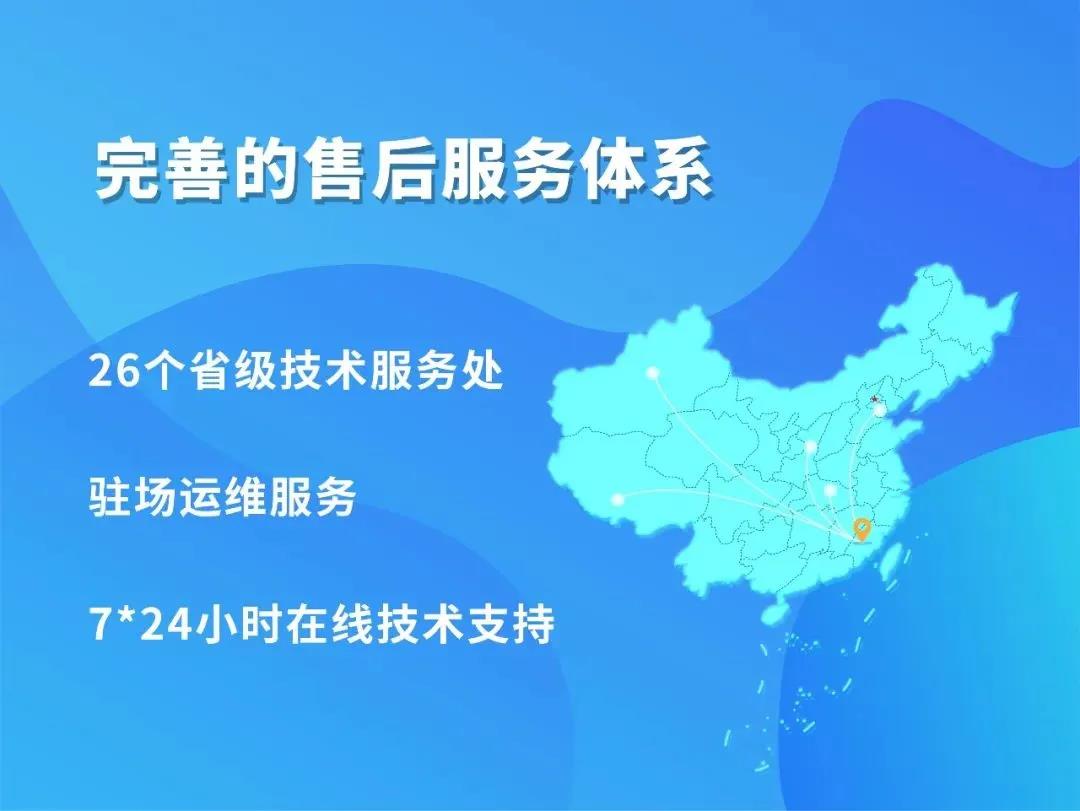 以北京、福州、武漢、西安為技術(shù)中心,設(shè)立了包括新疆、西藏在內(nèi)的26個(gè)省級(jí)技術(shù)服務(wù)處,提供駐場(chǎng)運(yùn)維服務(wù)和7*24小時(shí)在線技術(shù)支持,服務(wù)網(wǎng)絡(luò)遍布全國(guó)。