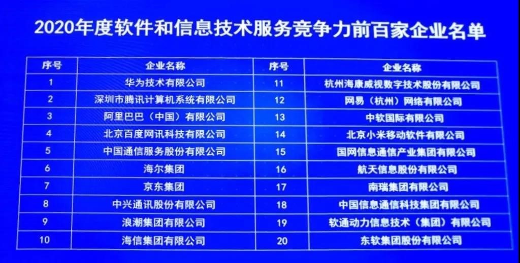 2020年度軟件和信息技術(shù)服務(wù)企業(yè)競爭力百強(qiáng)榜單揭曉,國網(wǎng)信通產(chǎn)業(yè)集團(tuán)榮登第十五位