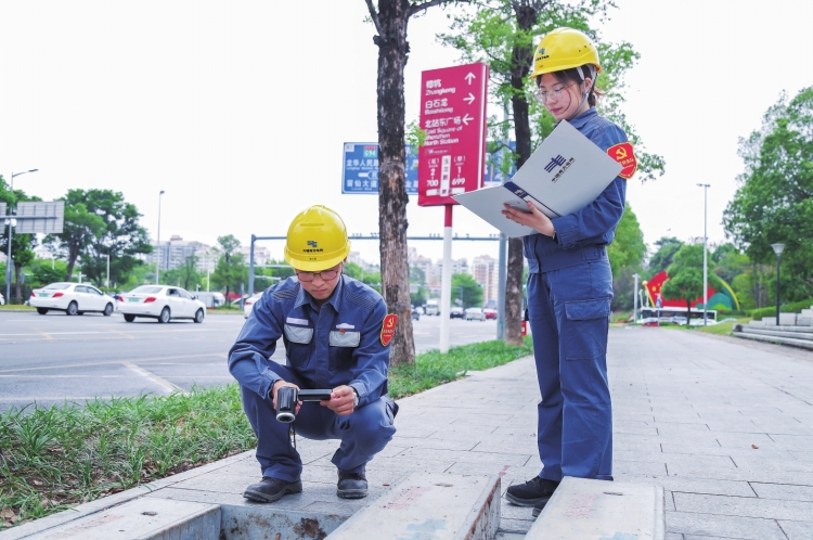 深圳龍華供電局工作人員在檢查電纜運(yùn)行情況,保障深圳北站電力可靠供應(yīng)。 黃志偉 攝