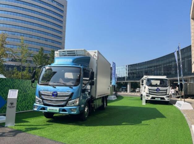 北汽集團旗下北汽福田攜最新研發(fā)的氫燃料電池冷藏車、氫燃料電池環(huán)衛(wèi)專用車產(chǎn)品亮相會場。