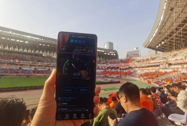 圖:濟(jì)南奧體中心5G網(wǎng)速測(cè)試